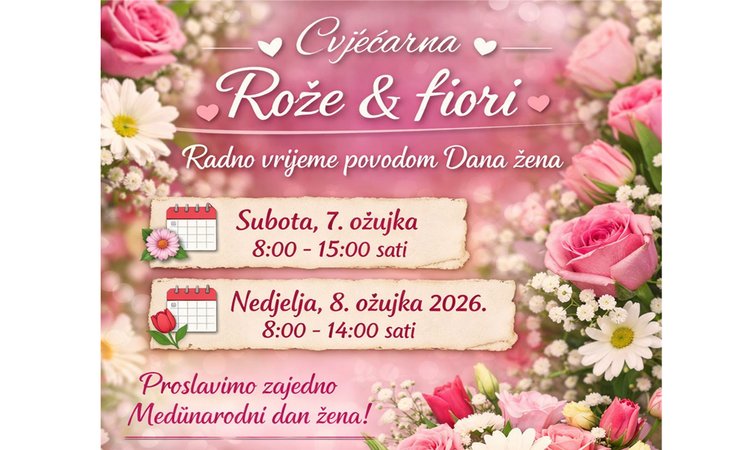 Subota, 7. ožujka 2026..od 8:00 do 15:00 sati