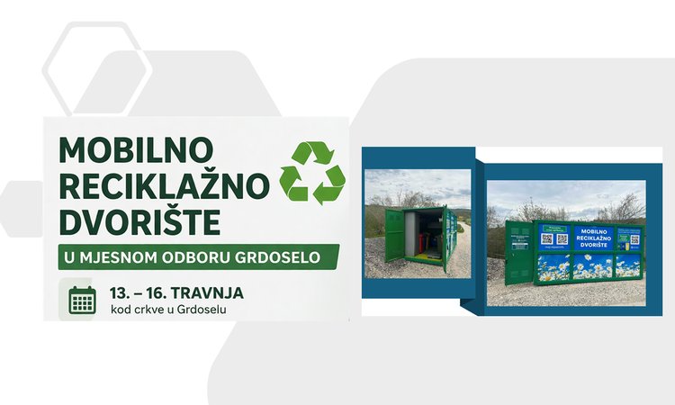 Sljedeći tjedan, od 13. do 16. travnja, mobilno reciklažno dvorište bit će postavljeno na području Mjesnog odbora Grdoselo, na javnoj površini kod crkve u Grdoselu.